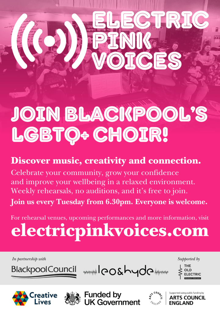We’re especially excited to partner with the Blackpool Film Festival to create a new strand of sing a long events, combining music and film to spark dialogue and celebrate queer voices past and present. These events will give us the chance to connect with the wider community, learn from each other’s stories, and bring joy to the heart of the town.